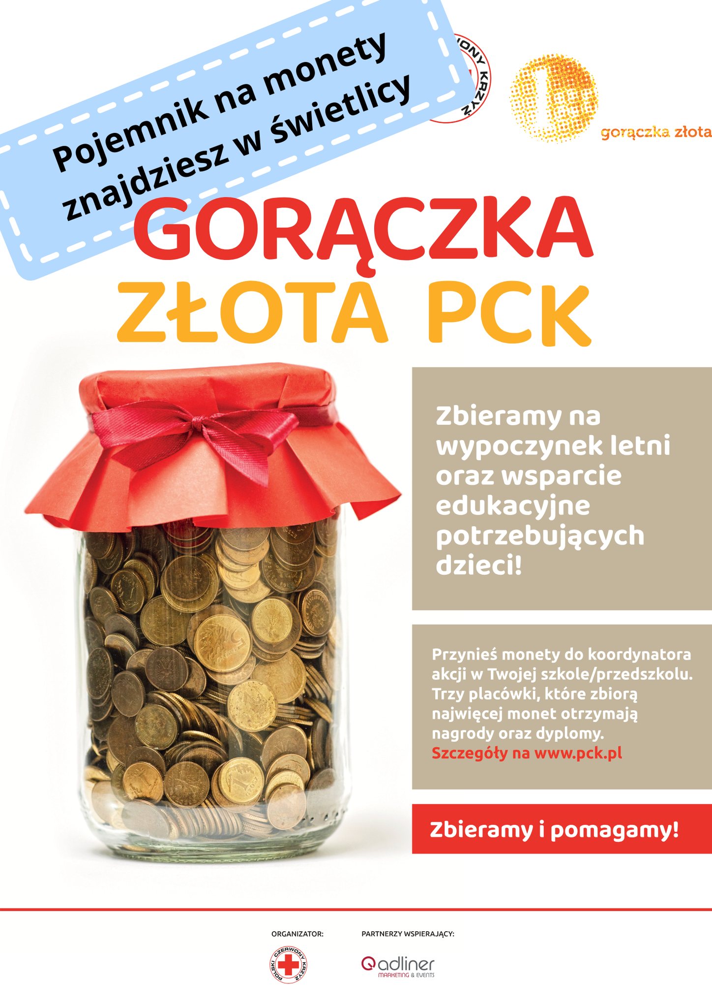 Zachęcamy do włączenia się do corocznej akcji PCK Gorączka Złota. Do pojemnika wystawionego w świetlicy szkolnej można wrzucać monety o wartości: 1,2 lub 5 groszy.